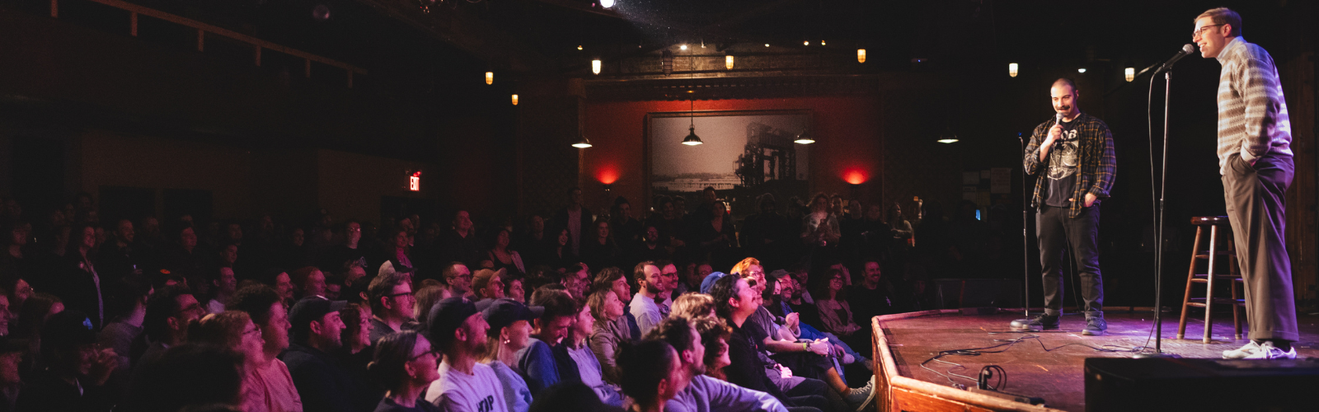 Service Animals: Service animals are permitted inside the venue during events. Only registered working animals are permitted. The Bell House requires, consistent with the ADA, that service animals must be harnessed, leashed, or tethered, unless these devices interfere with the service animal’s work or the individual’s disability prevents them from using these devices. Individuals who cannot use such devices must maintain control of the animal through voice, signal, or other effective methods.